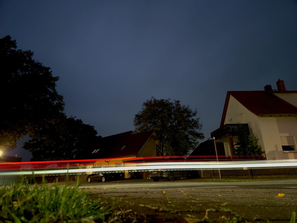 Für die Nachtaufnahmen haben die SuS geübt, wie man Kamera optimal für eine dunkle Umgebung einstellt. Gleichzeitig sollten sie aber die Belichtungszeit erhöhen, sodass man den Bewegungsverlauf von Lichtquellen verfolgen kann. Der Effekt, den man auf den Bildern erkennen kann, ist also beabsichtigt und kann dann genutzt werden, um mit Licht zu schreiben oder Formen zu bilden.