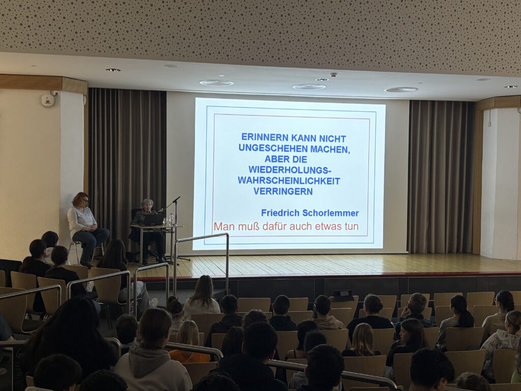 Unsere Schülerinnen und Schüler zeigten sich tief beeindruckt – nicht nur von den bewegenden Erzählungen, sondern auch von der Offenheit, mit der Frau Vidláková ihre Geschichte teilte. Wir sind sehr dankbar für diesen besonderen Besuch und für die wichtige Botschaft, die sie unserer Schulgemeinschaft mitgegeben hat: Erinnern allein reicht nicht – wir alle müssen Verantwortung für die Zukunft übernehmen!