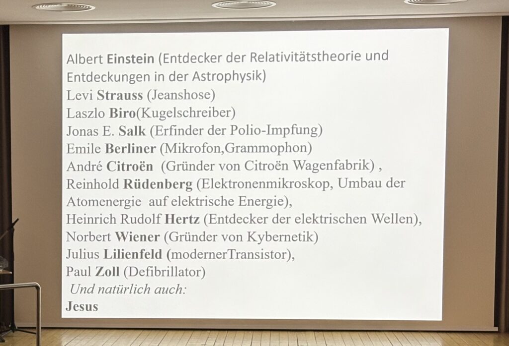 Zu Beginn ihres Vortrags zitierte sie den Theologen Friedrich Schorlemmer: „Erinnern kann nicht ungeschehen machen, aber die Wiederholungswahrscheinlichkeit verringern.“ Und sie ergänzte eindringlich: „Man muss auch etwas dafür tun!“ Eine Botschaft, die die gesamte Veranstaltung begleitete. Immer wieder schlug sie dabei den Bogen in die Gegenwart. Hautfarbe oder Religion dürften niemals darüber entscheiden, wie ein Mensch behandelt wird. Sie erklärte auch, welche Erfindungen und Entdeckungen ohne jüdische Menschen vielleicht nie gemacht worden wären, wie z.B. die Polio-Impfung (Jonas E. Salk) oder der Defibrillator (Paul Zoll).