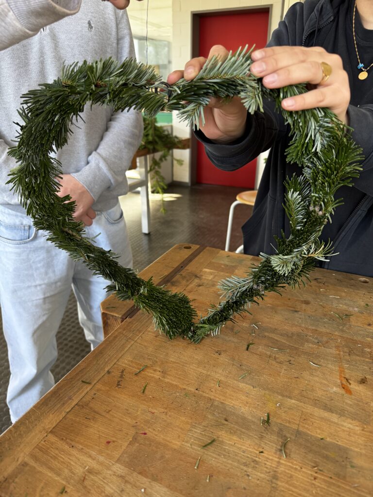 Im Rahmen der Gedenkveranstaltung wurde auch ein Kranz niedergelegt, den Schülerinnen des 9. Jahrgangs am Freitag im Rahmen des Aurelia-Wald-Tags an der AWG gebunden hatten.