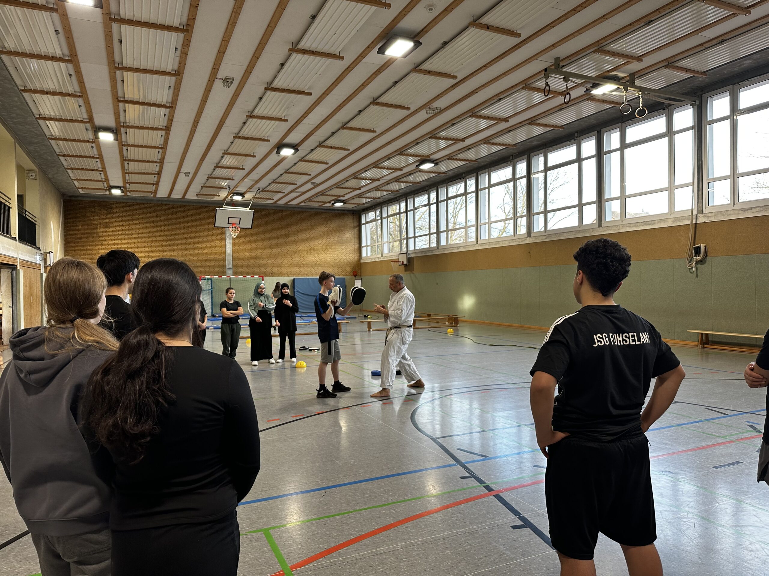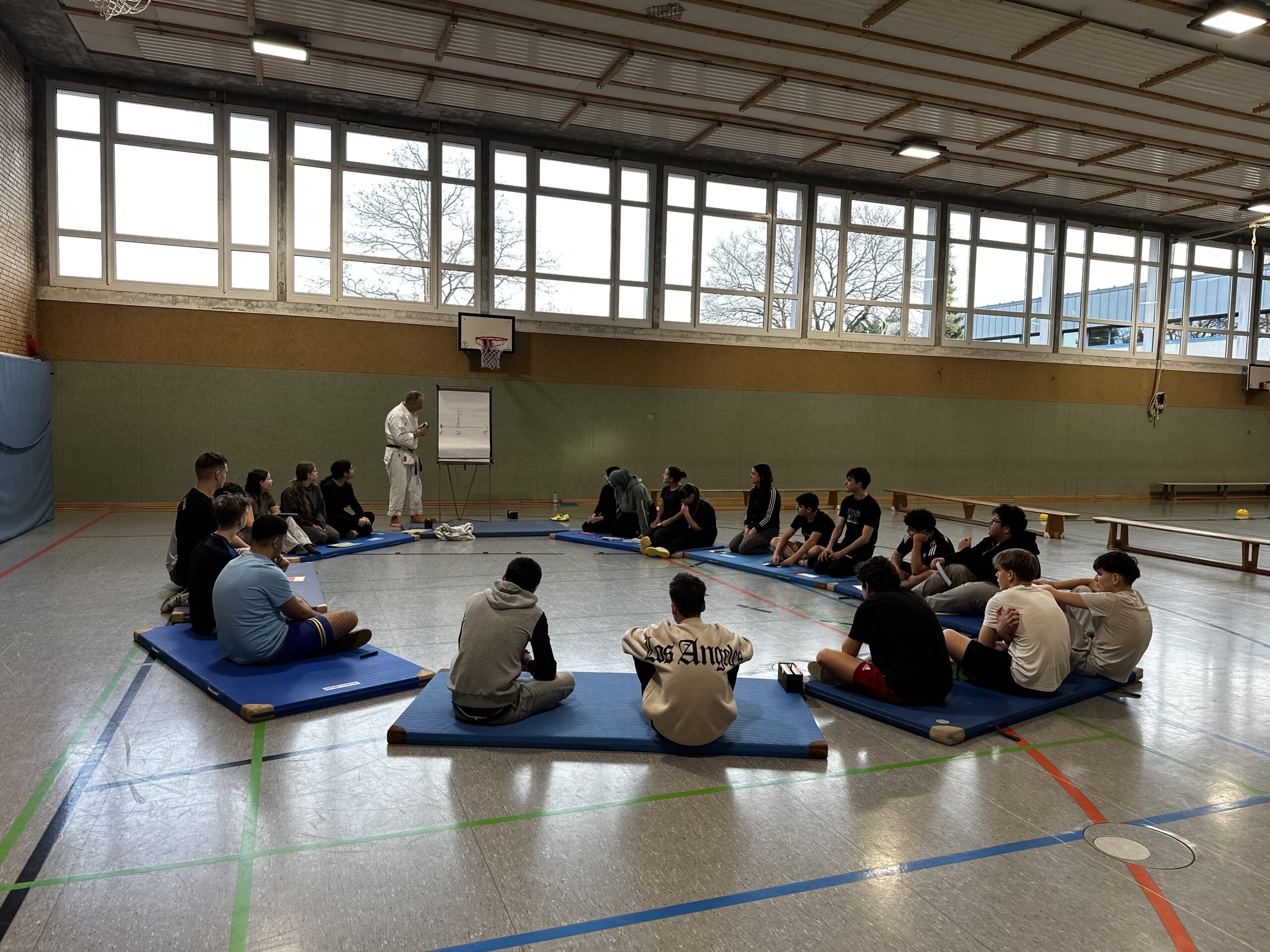 Geleitet wurde der Workshop von Jens Schaprian vom Budo Dojo Shujinko. Ziel war es, den Jugendlichen praxisnahe Strategien für den Umgang mit herausfordernden und potenziell gefährlichen Situationen zu vermitteln. Im Mittelpunkt stand dabei nicht das Kämpfen, sondern ein klarer, selbstbestimmter und verantwortungsvoller Umgang mit Konflikten.