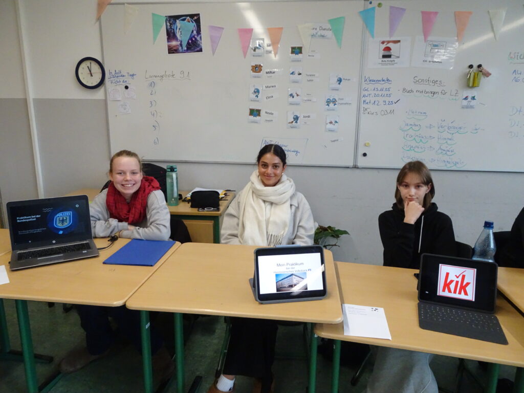 Der 9. Jahrgang präsentierte dem 8. Jahrgang dort die Erfahrungen aus seinem dreiwöchigen Betriebspraktikum, das kurz vor den Herbstferien durchgeführt wurde.